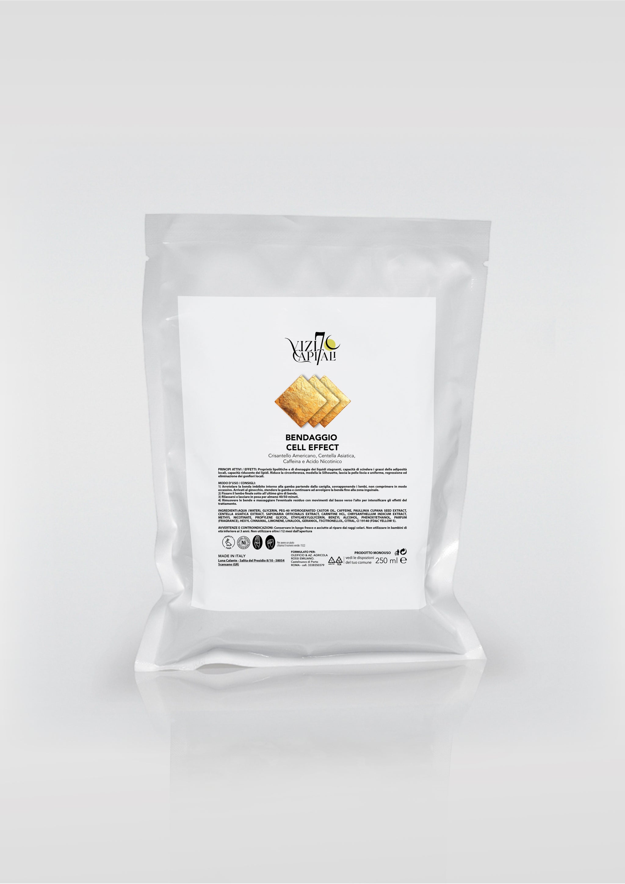 1) Arrotolare la benda imbibite intorno alla gamba partendo dalla caviglia, sovrapponendo i lembi, non comprimere in modo eccessivo. Arrivati al ginocchio, stendere la gamba e continuare ad avvolgere la benda fino alla zona inguinale. 2) Fissare il lembo finale sotto all’ultimo giro di benda. 3) Rilassarsi e lasciare in posa per almeno 40/50 minuti. 4) Rimuovere le bende e massaggiare l’eventuale residuo con movimenti dal basso verso l’alto per intensificare gli effetti del trattamento.